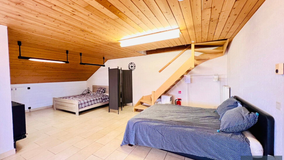 Het verdiep bestaat uit een grote polyvalente ruimte die perfect in de delen is tot meerdere slaapkamers waardoor de woning dienst kan doen voor een groot gezin. Kan eveneens ingedeeld worden tot woonkamer met slaapkamers en keuken – badkamer met douche, lavabo en toilet met afzonderlijke boiler – mogelijkheid tot dakterras