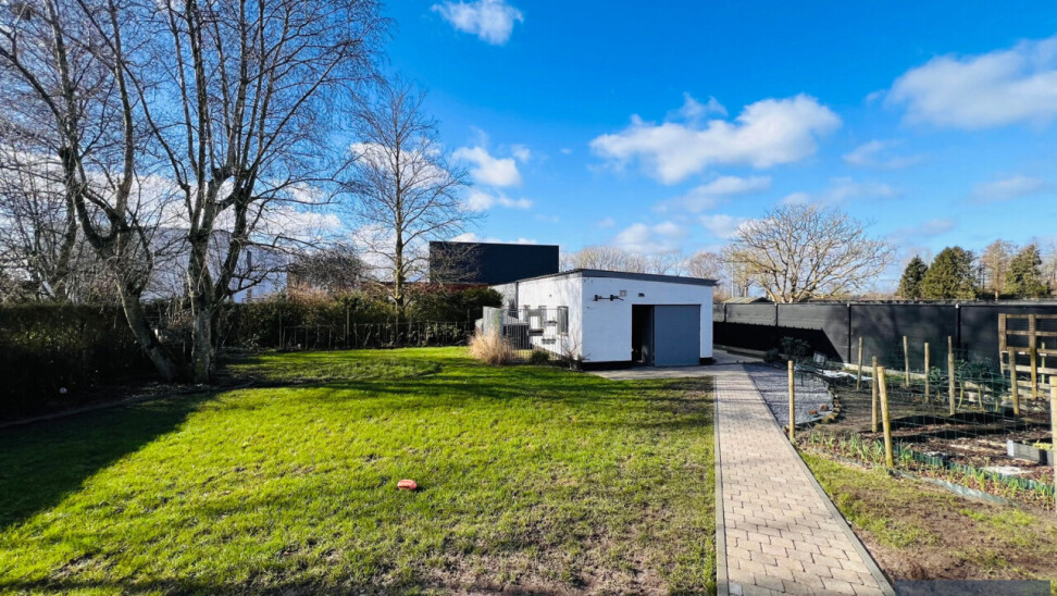 Buiten: ruime oprit met plaats voor meerdere wagens – laadpaal – aangelegde, volledig omheinde tuin met drainage systeem – nieuw aangelegd terras - moestuin – garage/bijgebouw met meerdere mogelijkheden