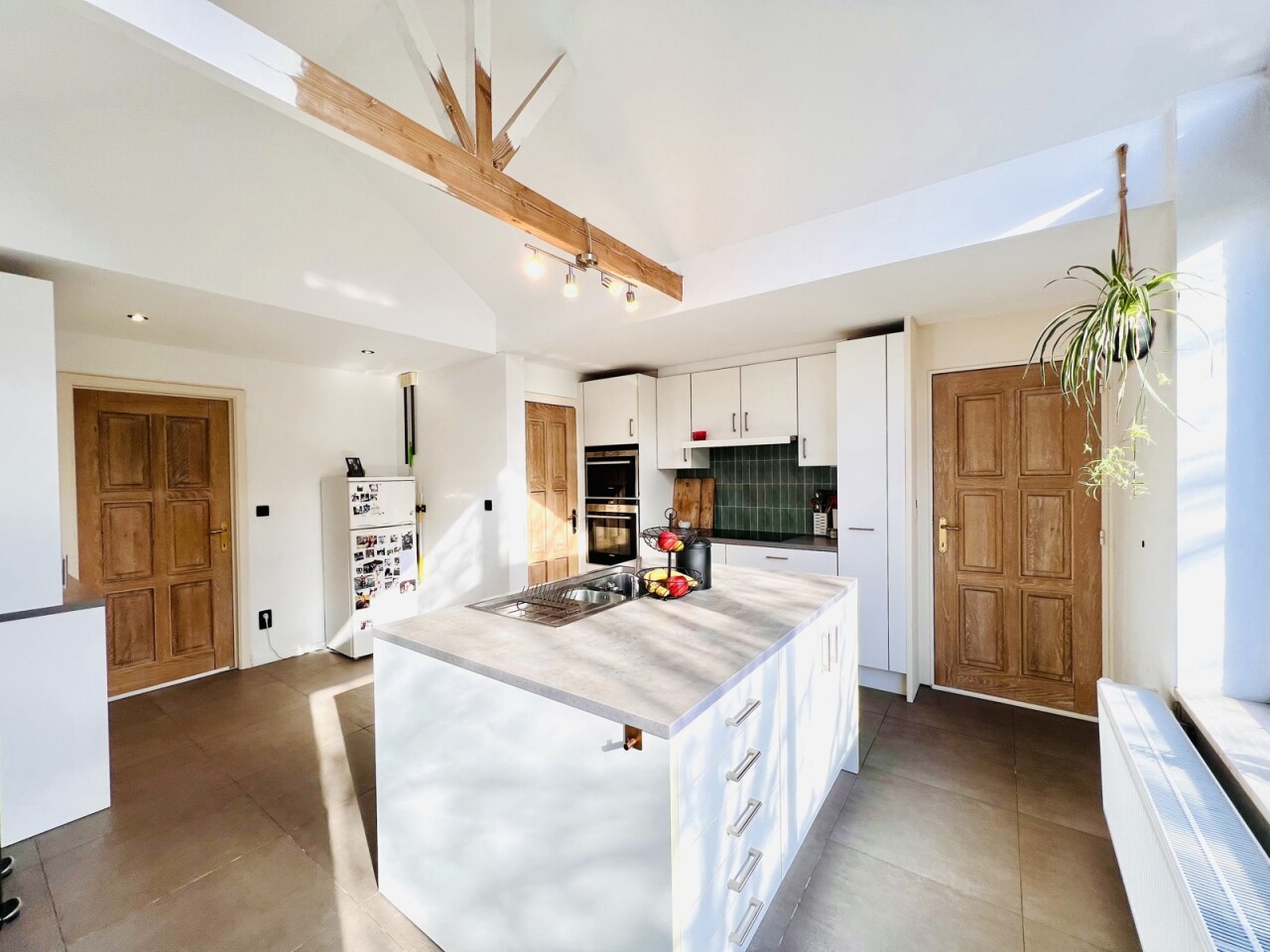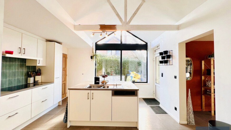 Wat deze eigendom bijzonder maakt? De vele mogelijkheden die ontstaan door de bruikbare oppervlakte en dubbele ingang: grote gezinnen, gezin die veel ruimte wenst, wonen-werken combineren – kangoeroewonen – deels eigen bewoning, deels verhuren, …