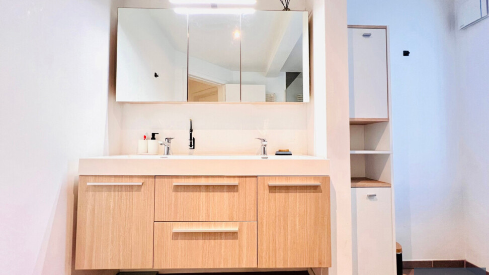 Wat deze eigendom bijzonder maakt? De vele mogelijkheden die ontstaan door de bruikbare oppervlakte en dubbele ingang: grote gezinnen, gezin die veel ruimte wenst, wonen-werken combineren – kangoeroewonen – deels eigen bewoning, deels verhuren, …