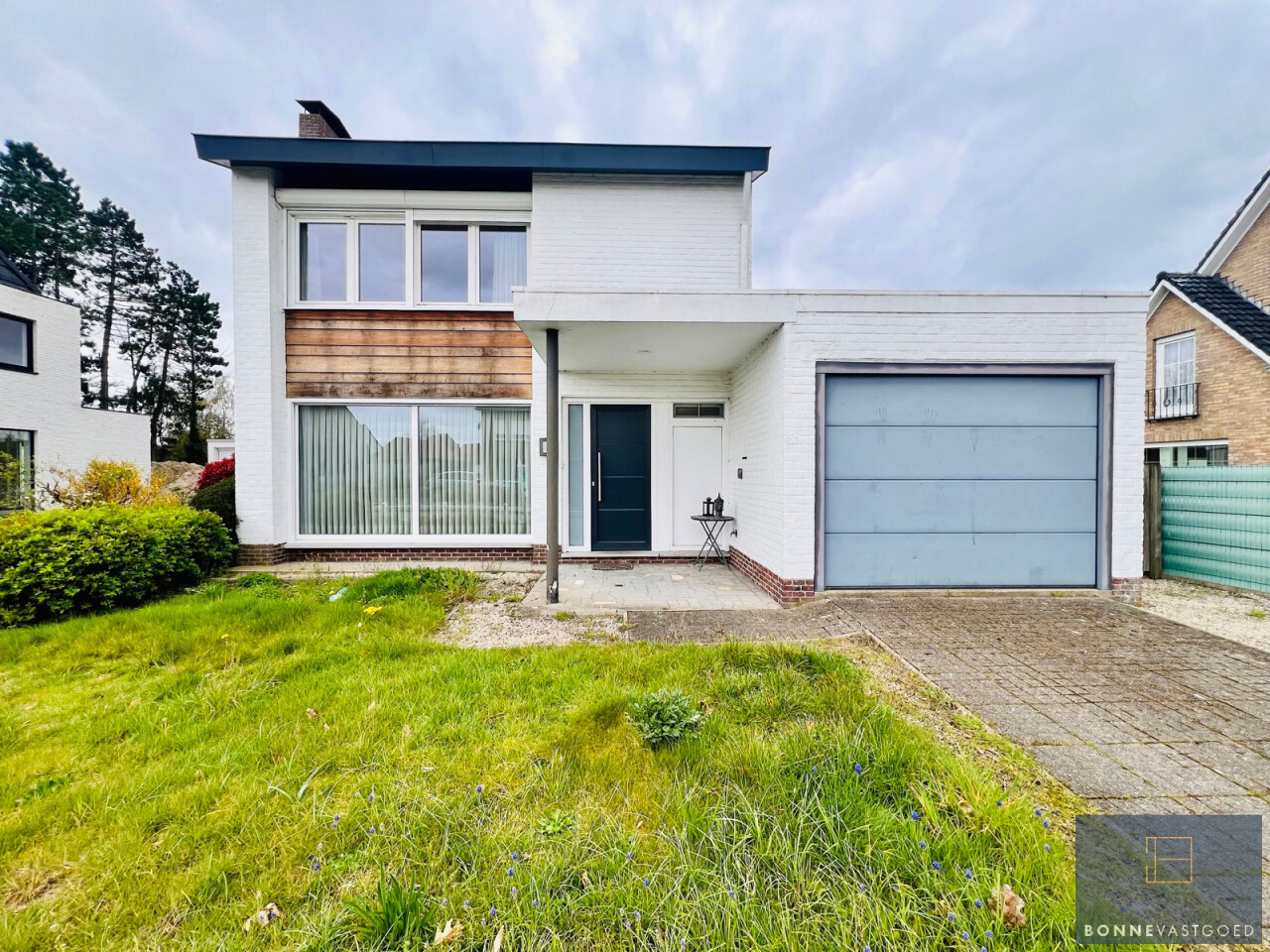 Bij het betreden van de woning word je verwelkomd in een lichtrijke leefruimte met eet- en zithoek en met toegang tot een veranda die aansluit op de zonnige tuin. Verder vind je op het gelijkvloers een ruime keuken, alsook een aparte wasplaats, afzonderlijk toilet, ruime inkomhall en toegang tot de inpandige garage. Kruipkelder aanwezig.