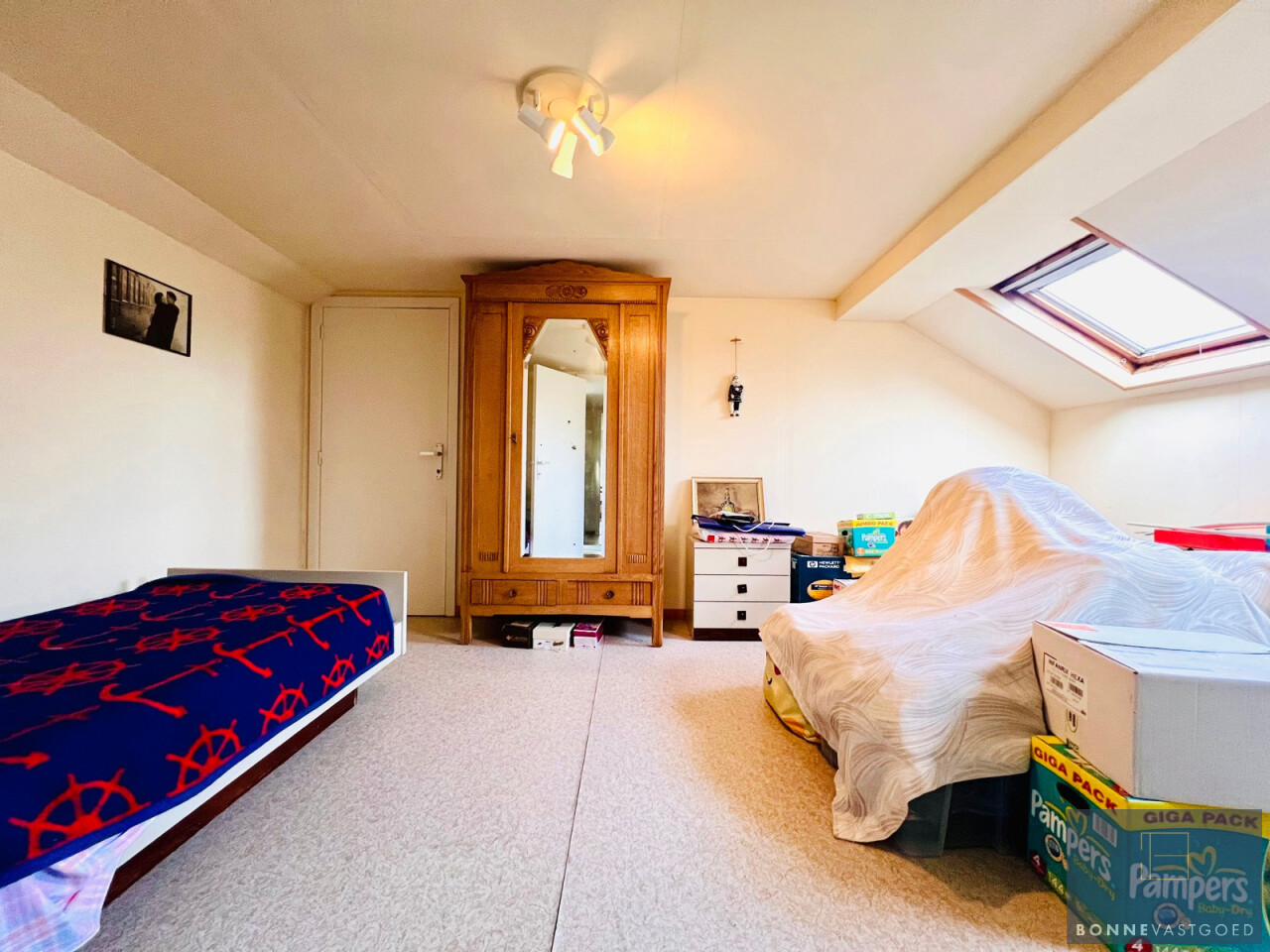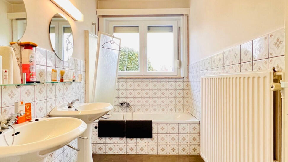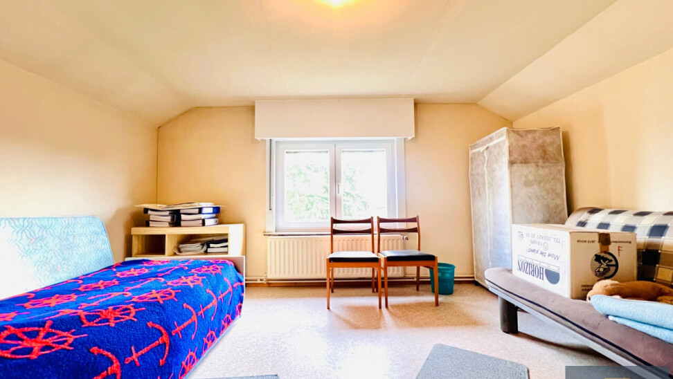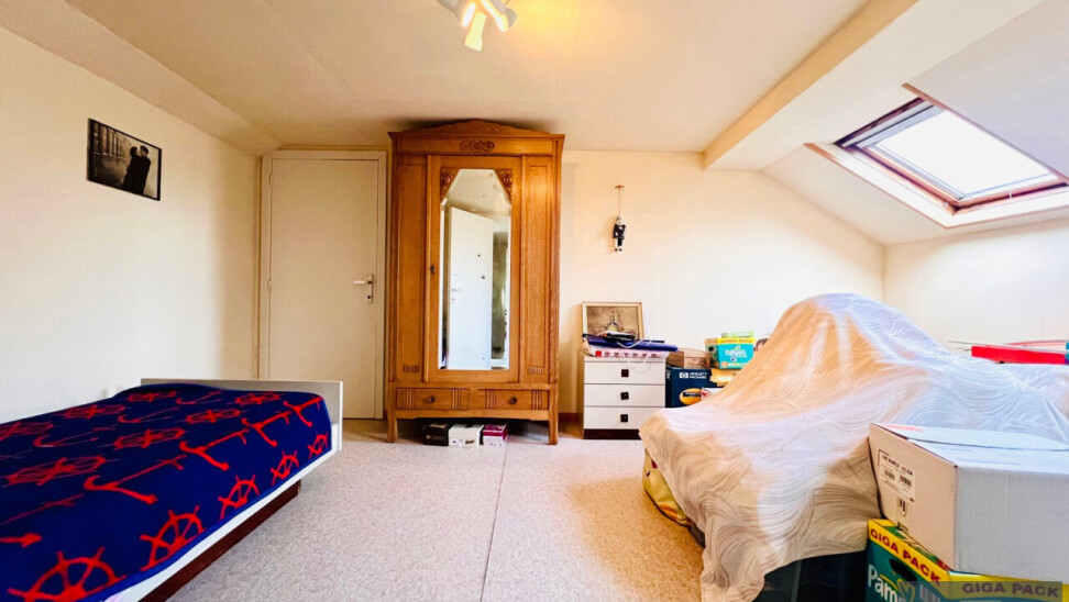 Eerste verdieping: 2 slaapkamers, wasruimte (met lavabo en bidet) en zolderruimte met plaats voor extra kamer/dressing/badkamer/..