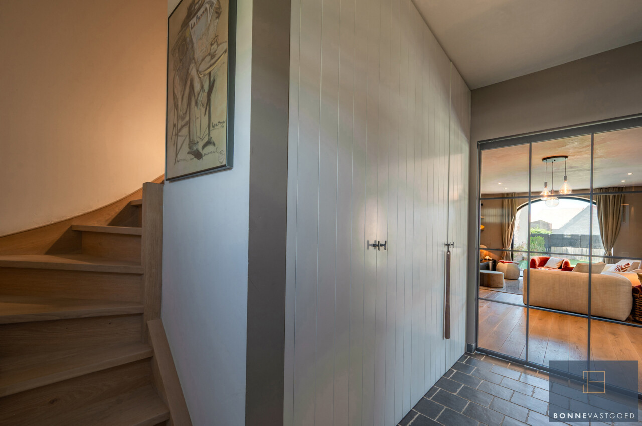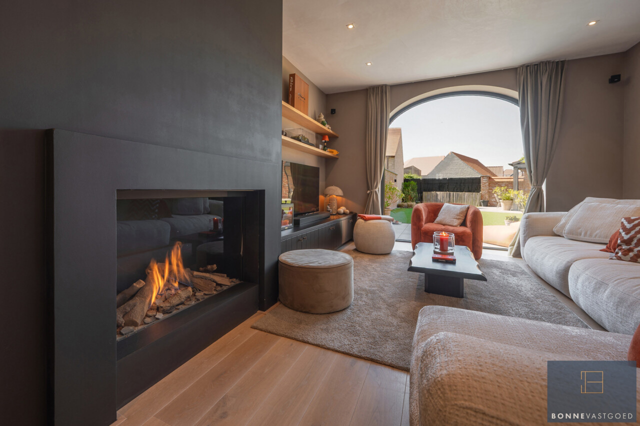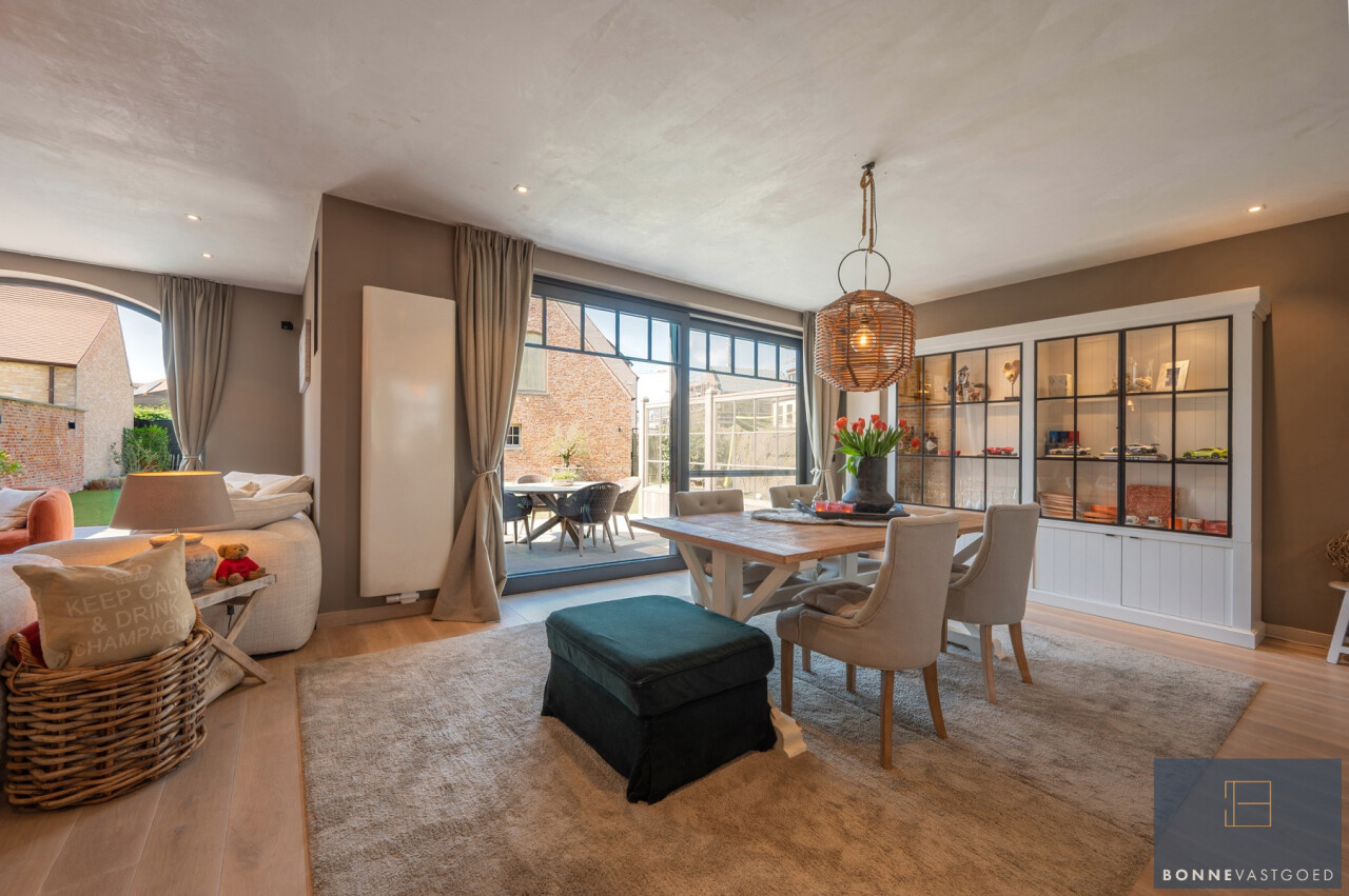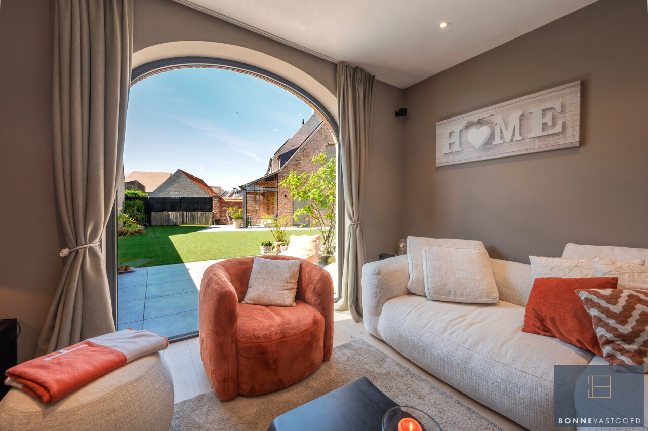 De woning werd met zorg en smaak gebouw. Daarnaast werd ze onlangs nog voorzien van gashaard en maatwerk meubels, Smeg gasfornuis,…