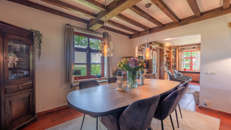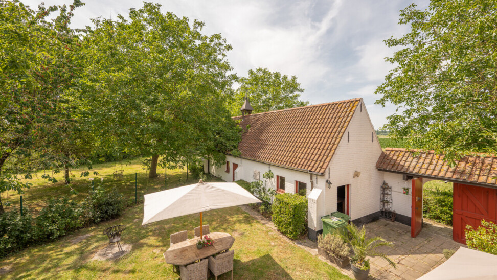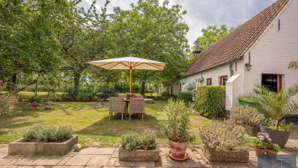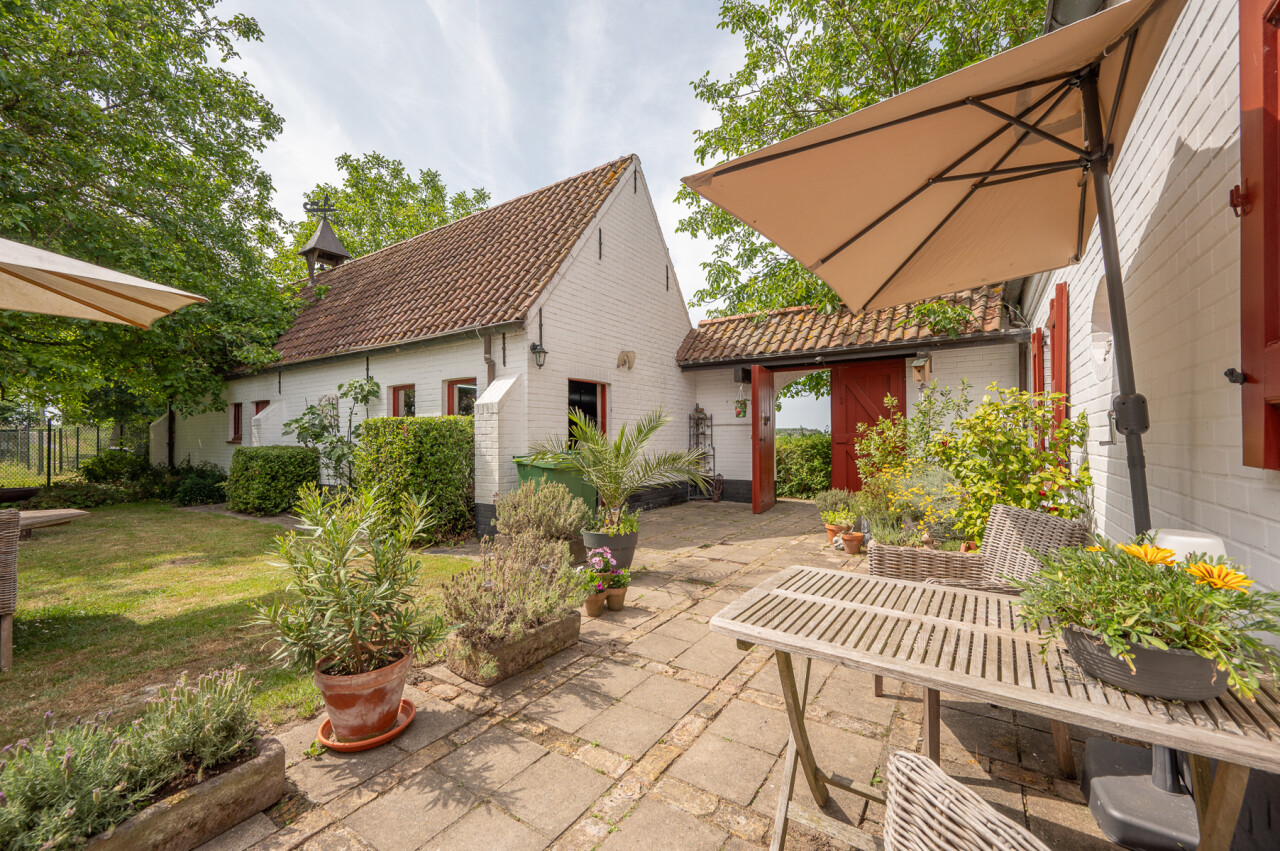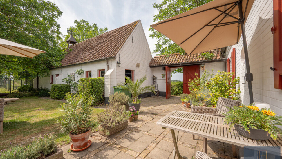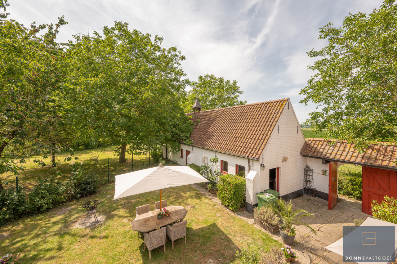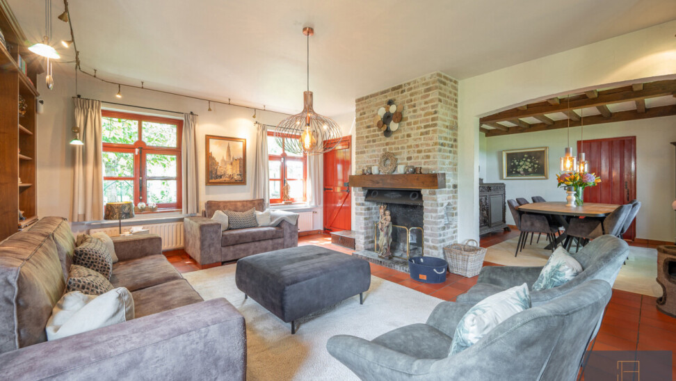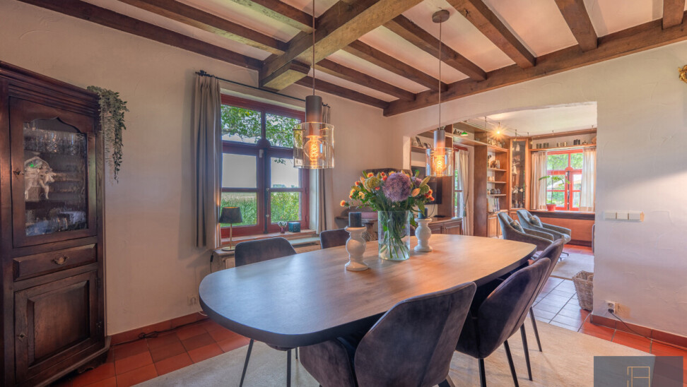 De typische landelijke hoevestijl dankt de woning aan z’n origine uit het begin van de 20ste eeuw. De voorbije decennia werd het woongedeelte volledig heropgebouwd naar moderne normen. Kwaliteit en degelijkheid werden hierbij hoog in het vaandel gedragen. Getuigen hiervan; de betonnen tussenverdieping, de vele maatkasten voor optimaal ruimtegebruik, de karakteriserende massieve binnendeuren, het monumentale balkwerk, voleiken parketvloeren, de gezellige haard,.. . Onlangs nog werden de 3 badkamers vernieuwd met mortex afwerking.