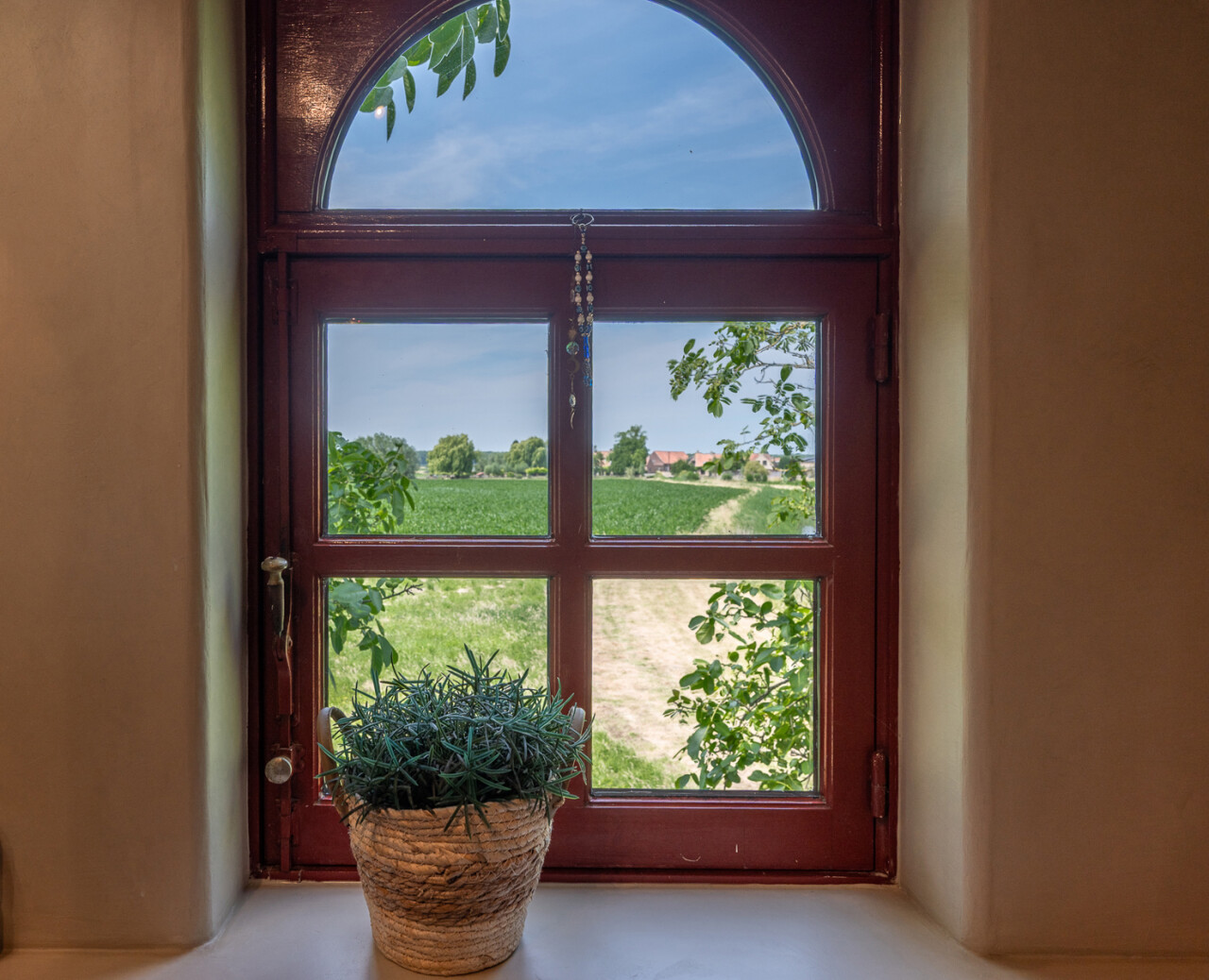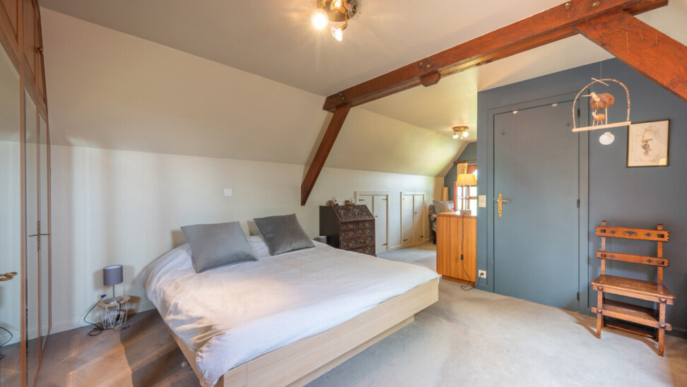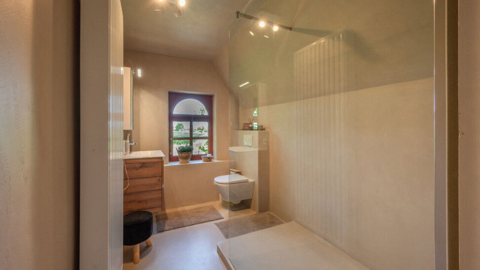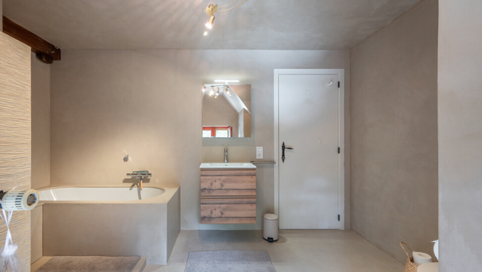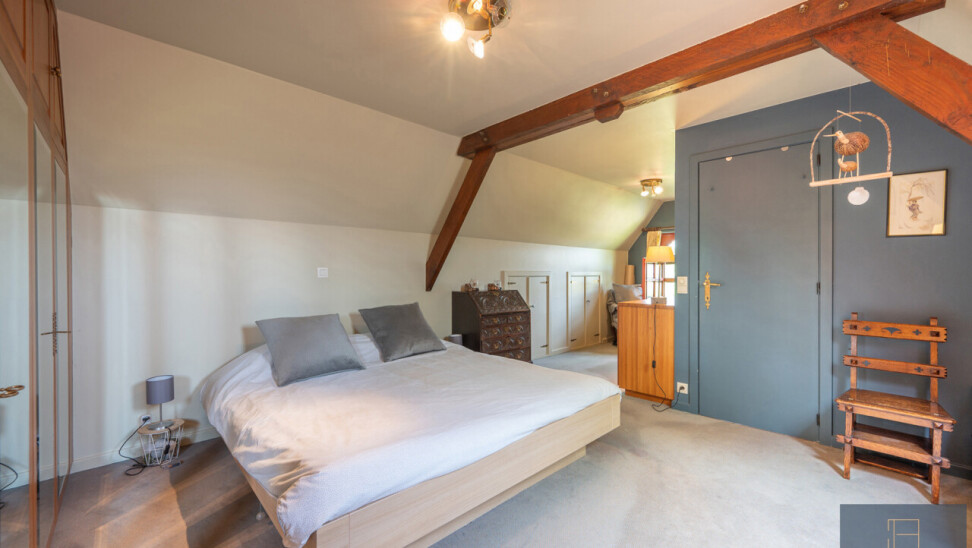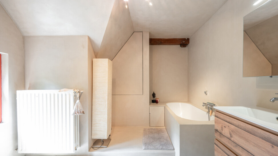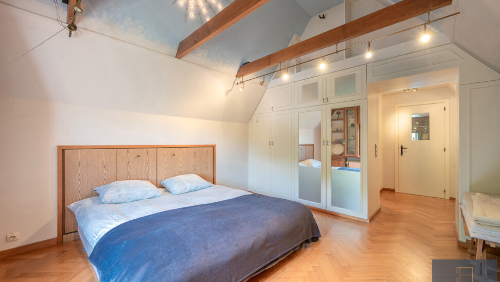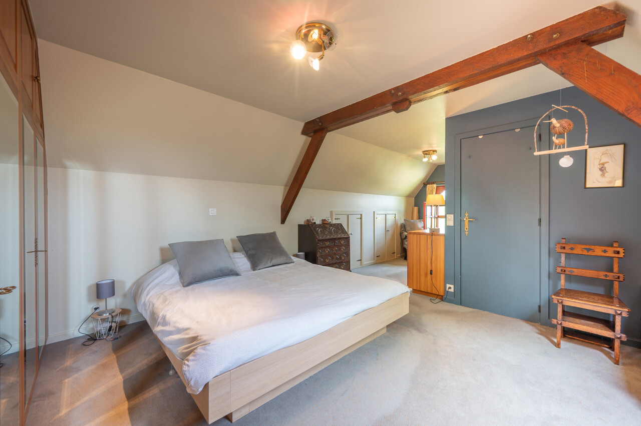 De typische landelijke hoevestijl dankt de woning aan z’n origine uit het begin van de 20ste eeuw. De voorbije decennia werd het woongedeelte volledig heropgebouwd naar moderne normen. Kwaliteit en degelijkheid werden hierbij hoog in het vaandel gedragen. Getuigen hiervan; de betonnen tussenverdieping, de vele maatkasten voor optimaal ruimtegebruik, de karakteriserende massieve binnendeuren, het monumentale balkwerk, voleiken parketvloeren, de gezellige haard,.. . Onlangs nog werden de 3 badkamers vernieuwd met mortex afwerking.