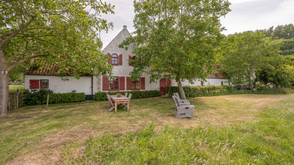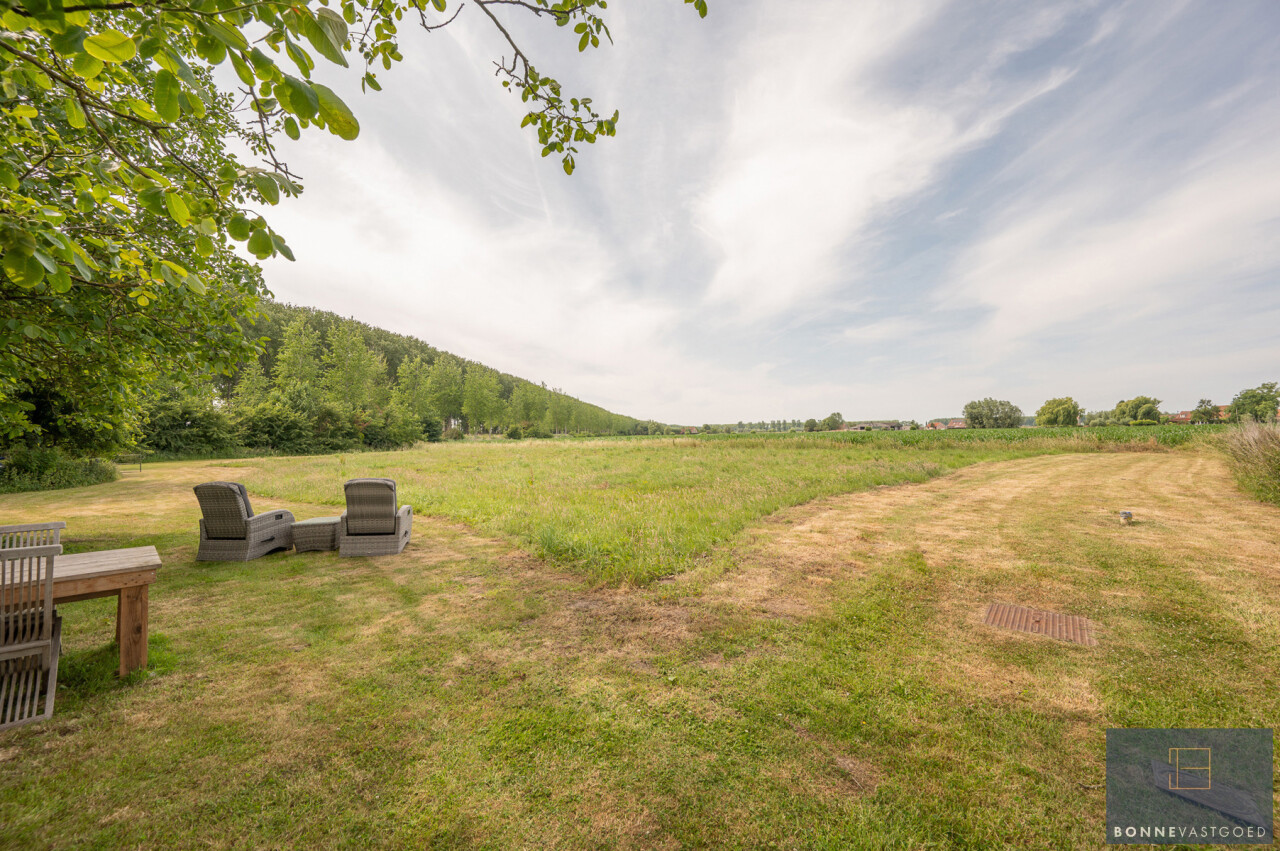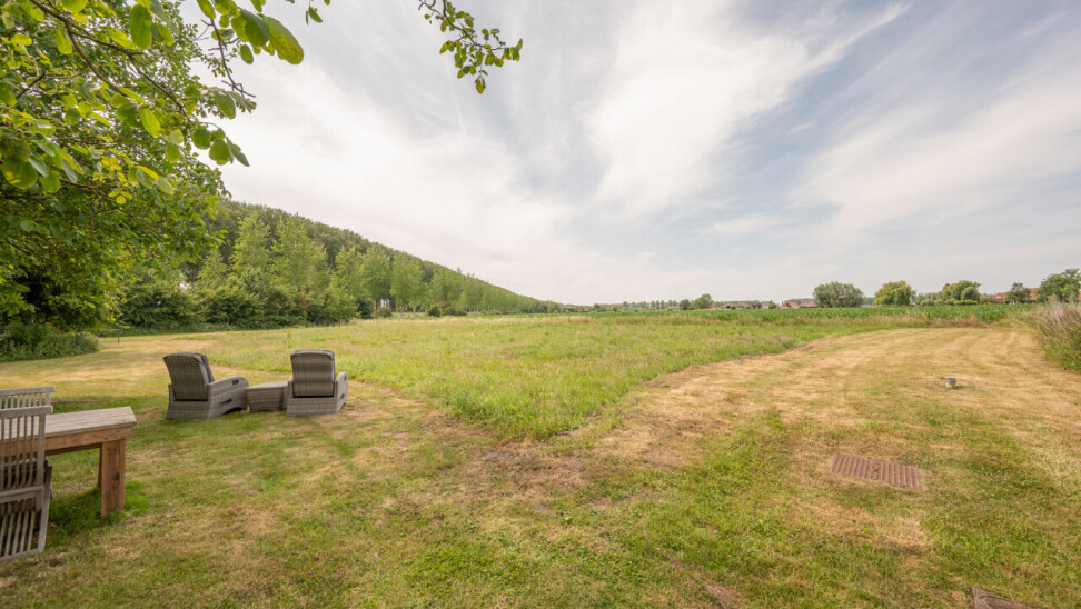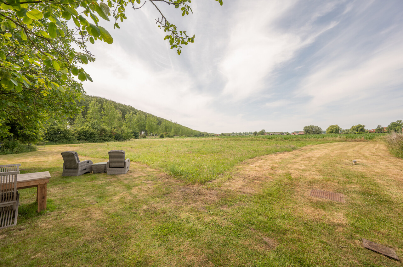 Op deze locatie wordt dit alles gecombineerd met een adembenemend open zicht over de achterliggende velden en de monumentale bomenrij die de Damse omgeving zo typeert.