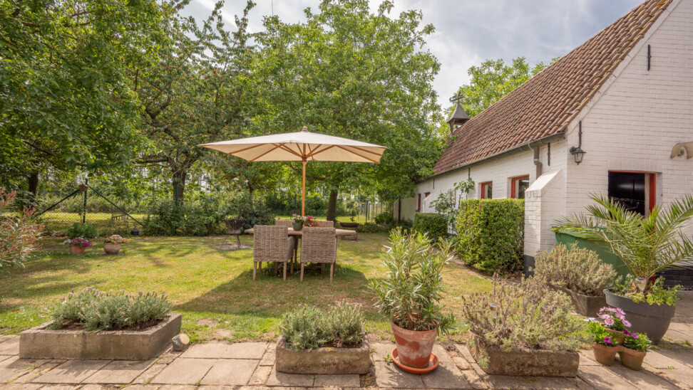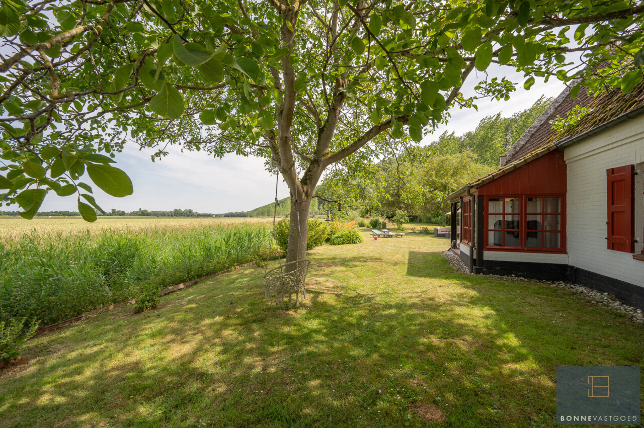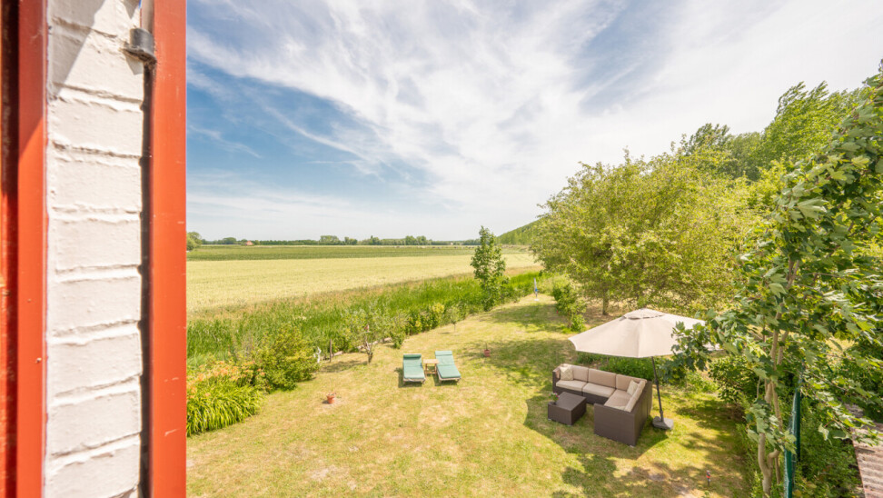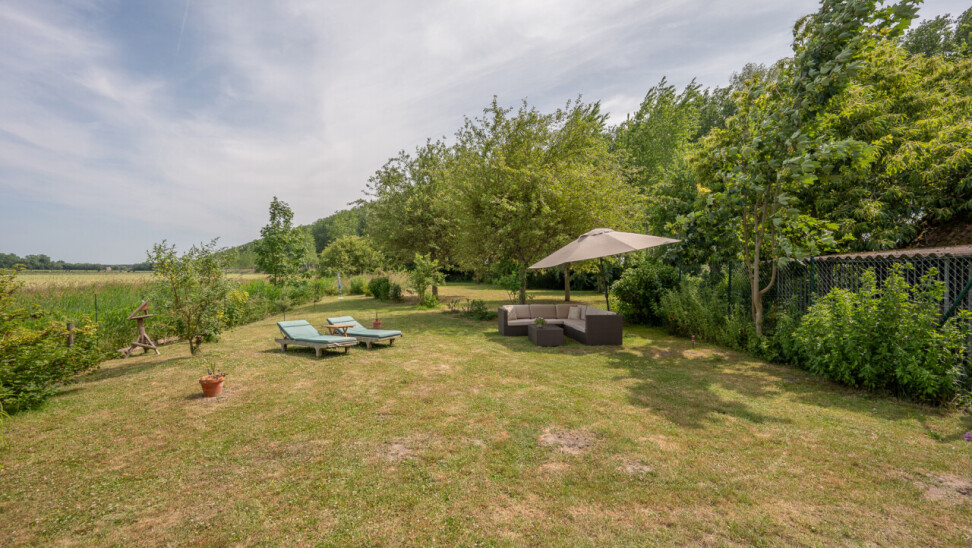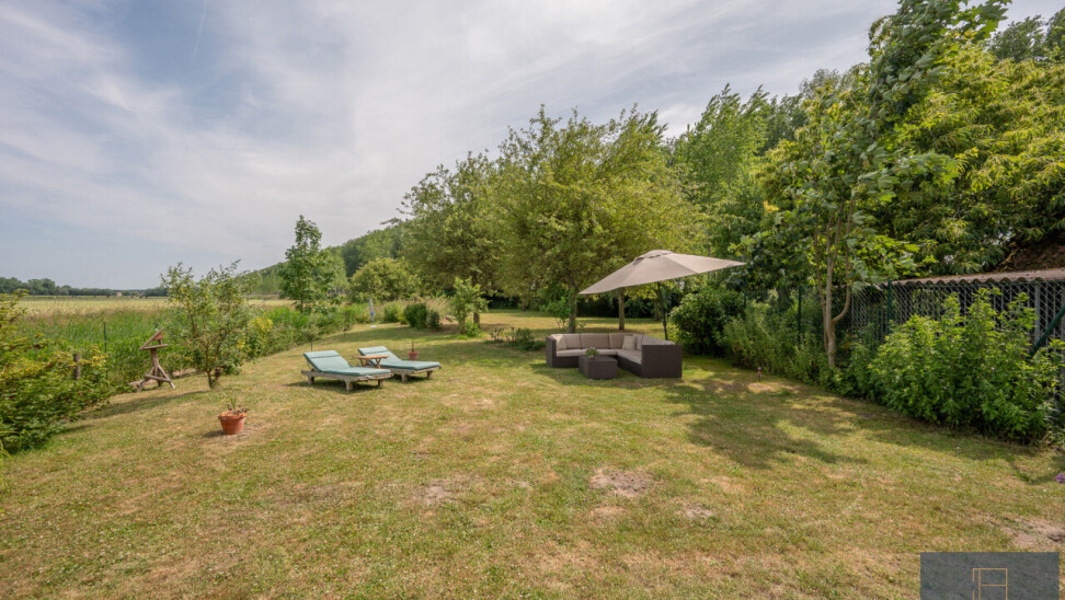 Op deze locatie wordt dit alles gecombineerd met een adembenemend open zicht over de achterliggende velden en de monumentale bomenrij die de Damse omgeving zo typeert.