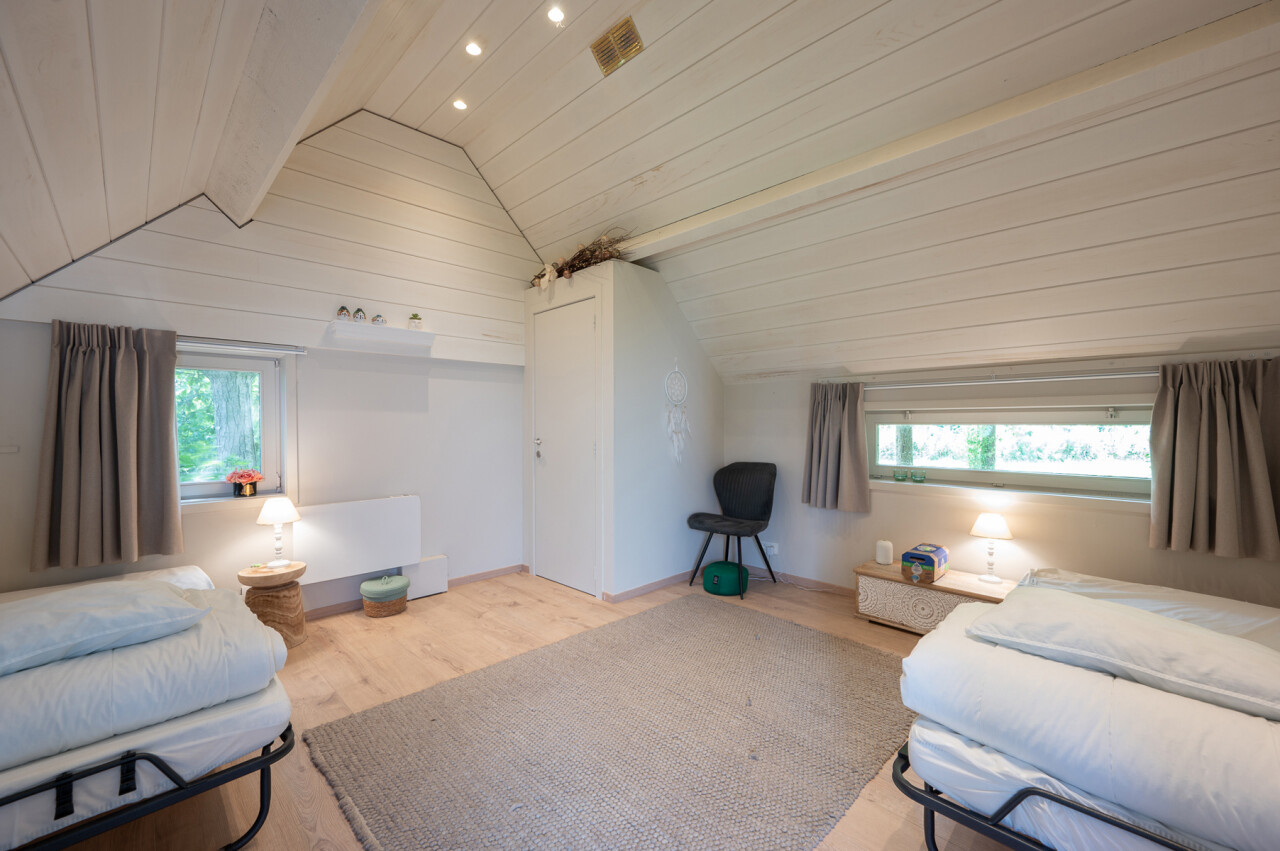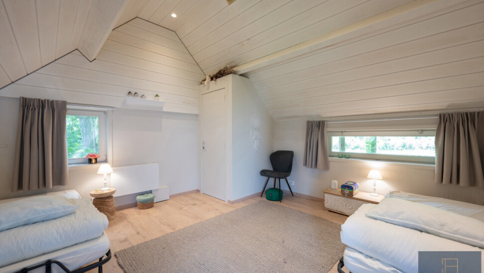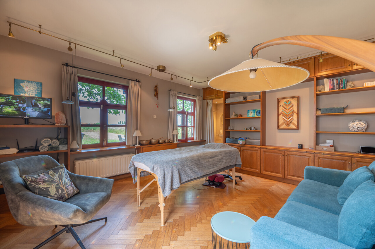 Buiten: groot garagegebouw met bergzolder (57m²), tuinberging, tuinberging, bijgebouw met sauna en bijgebouw/relaxruimte, boomgaard en weide.