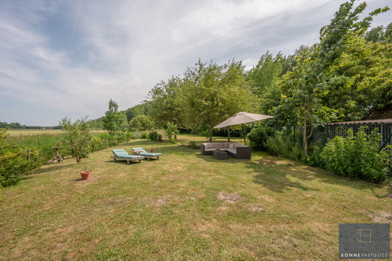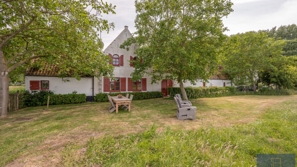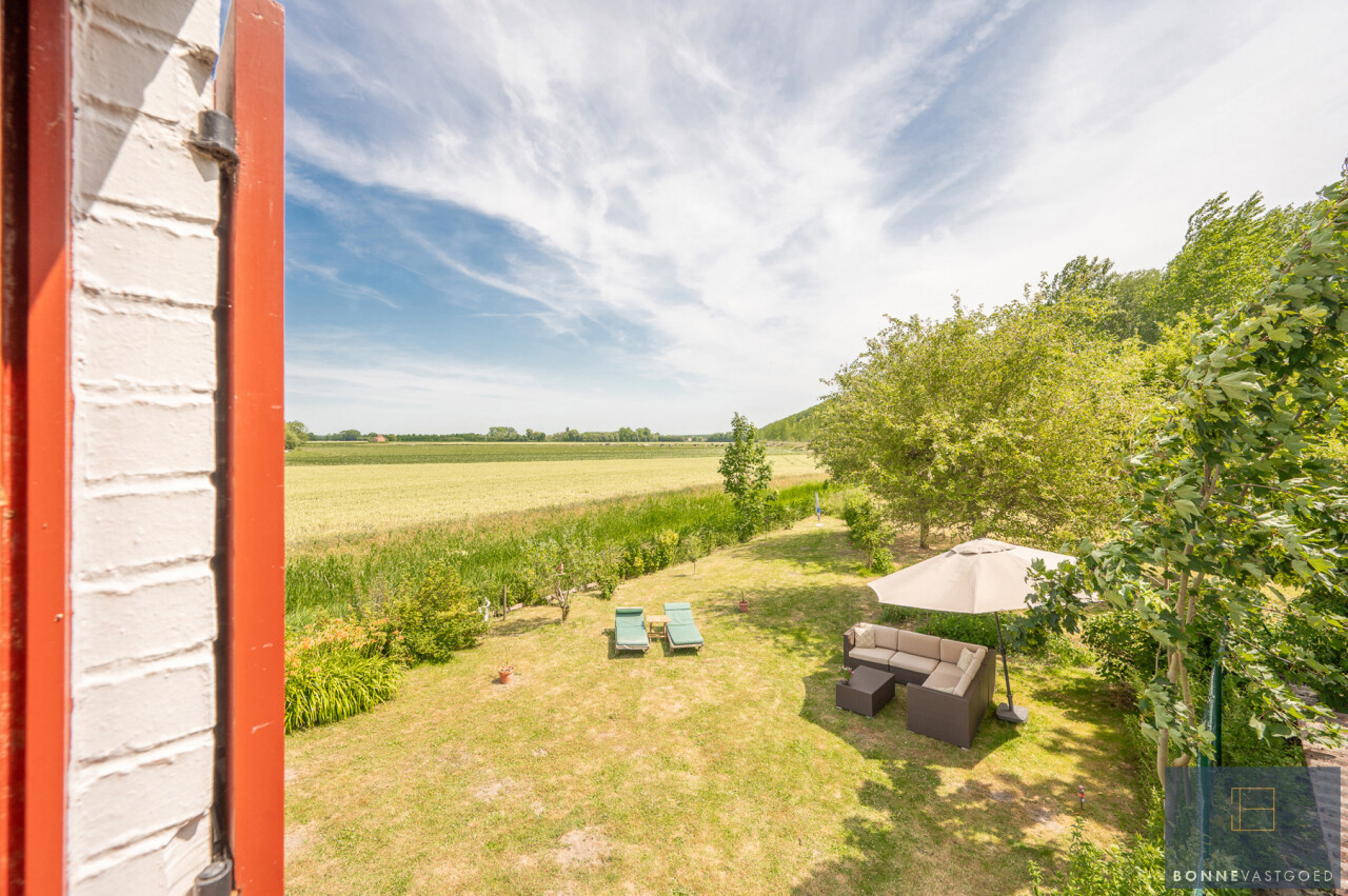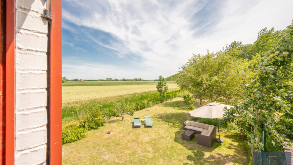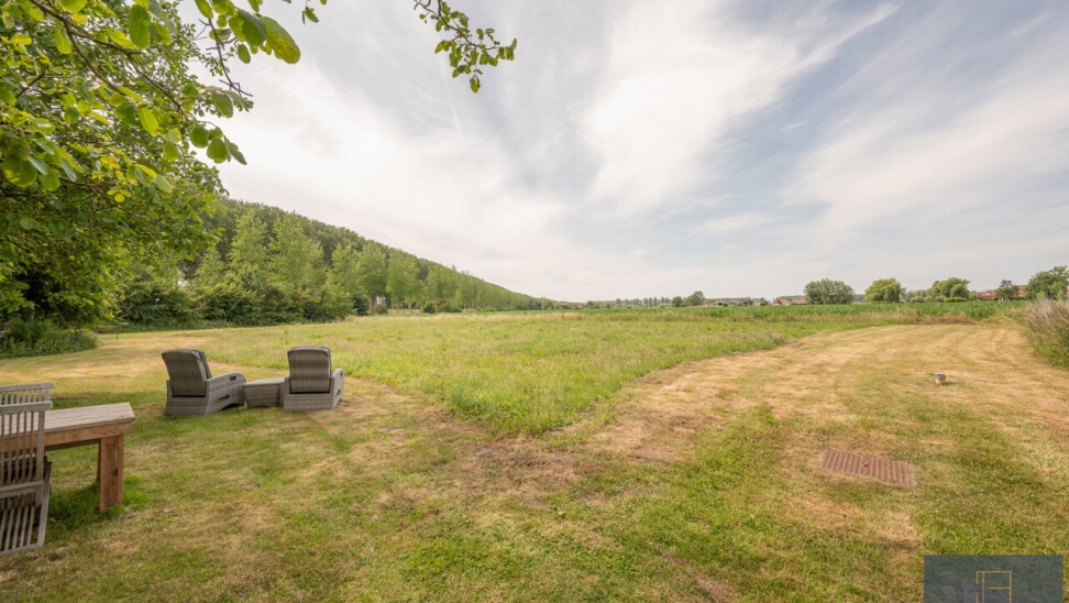 Op deze locatie wordt dit alles gecombineerd met een adembenemend open zicht over de achterliggende velden en de monumentale bomenrij die de Damse omgeving zo typeert.