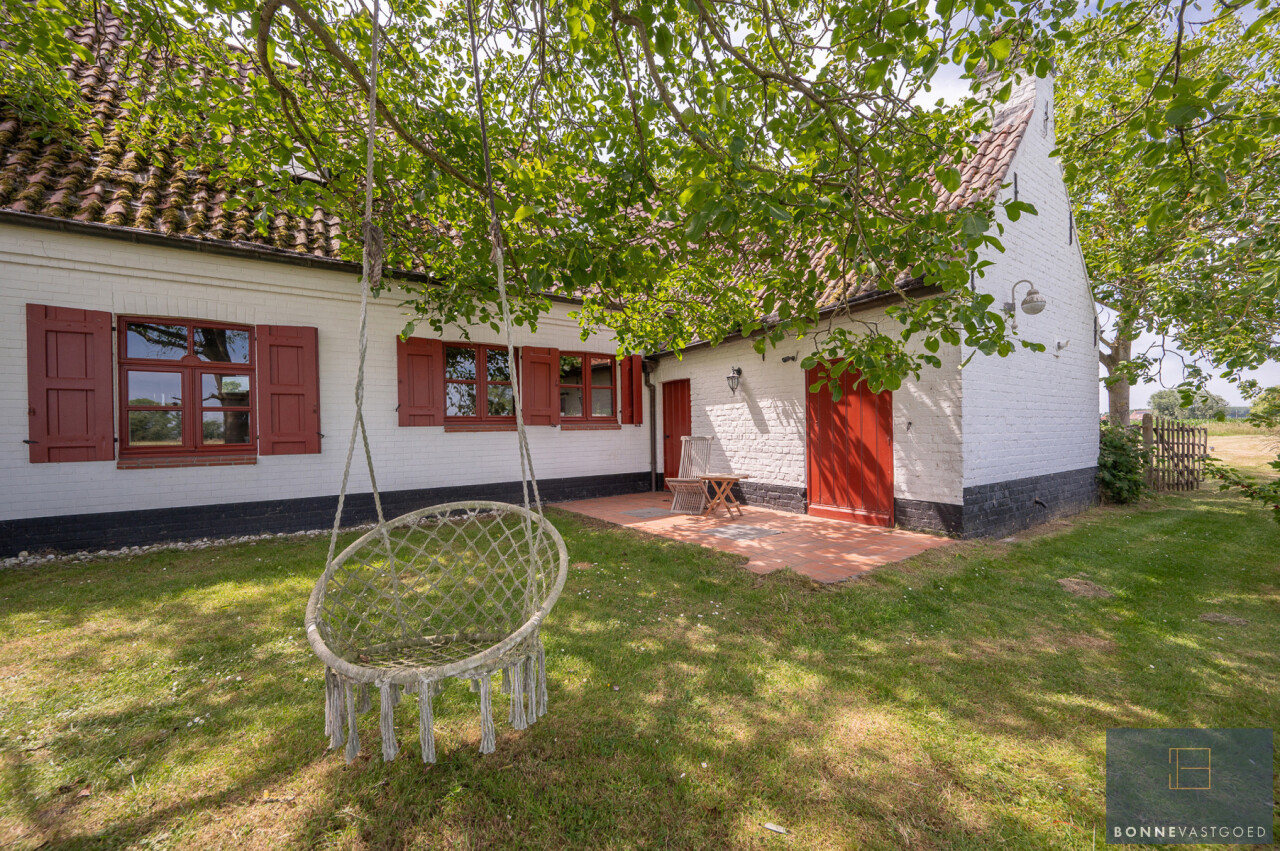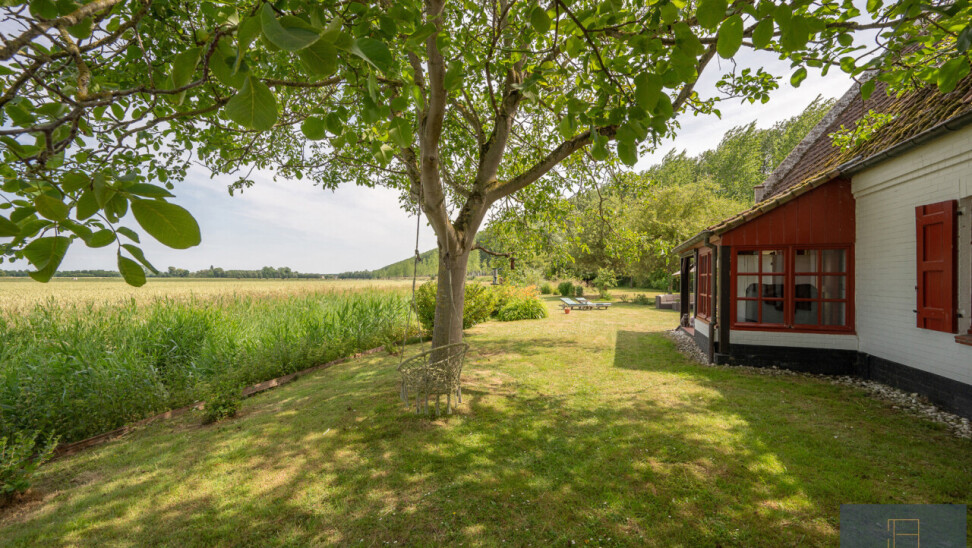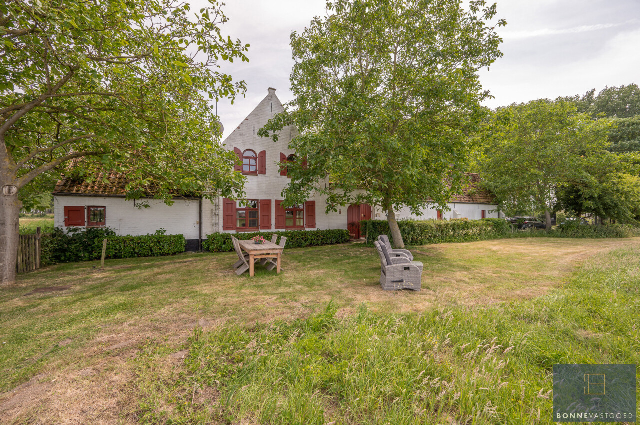 Op deze locatie wordt dit alles gecombineerd met een adembenemend open zicht over de achterliggende velden en de monumentale bomenrij die de Damse omgeving zo typeert.