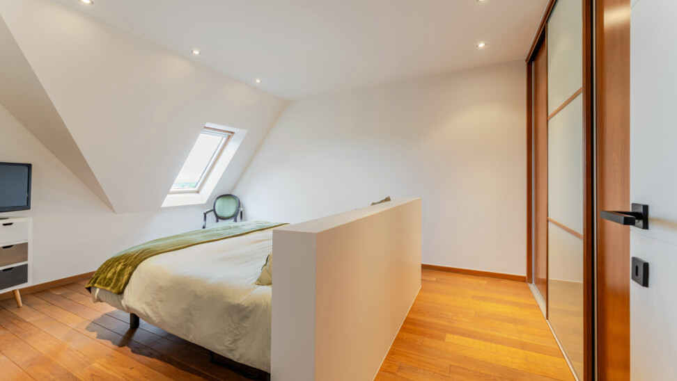 5e verdieping: een zeer ruime slaapkamer die eveneens dienst kan doen als bureau/hobbyruimte/fitnessruimte/dressing/… - badkamer met douche en afzonderlijk toilet
