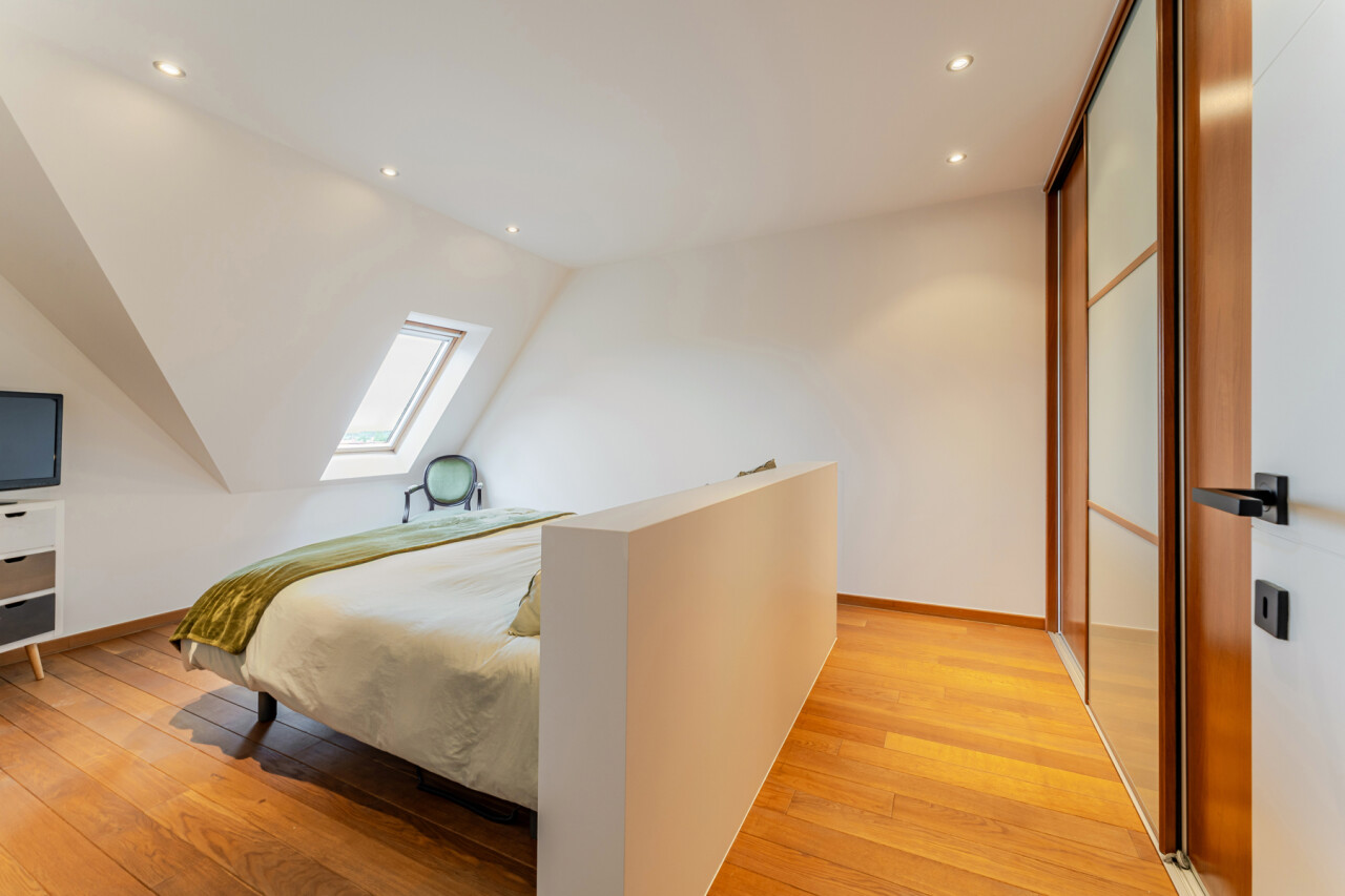 5e verdieping: een zeer ruime slaapkamer die eveneens dienst kan doen als bureau/hobbyruimte/fitnessruimte/dressing/… - badkamer met douche en afzonderlijk toilet