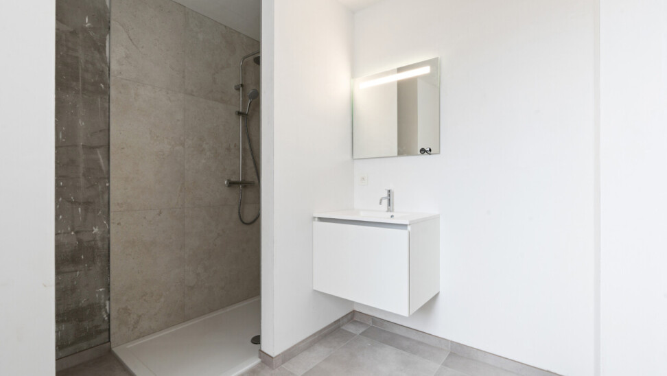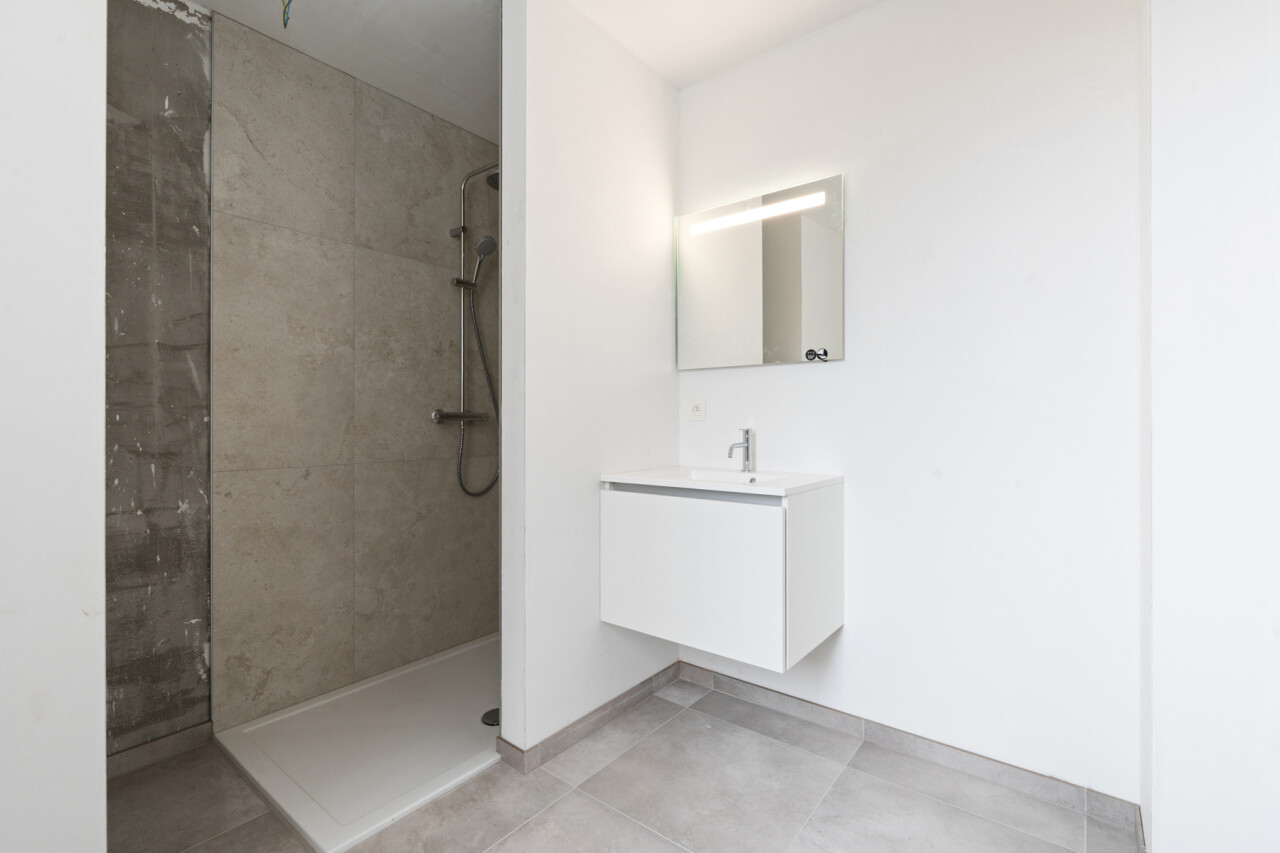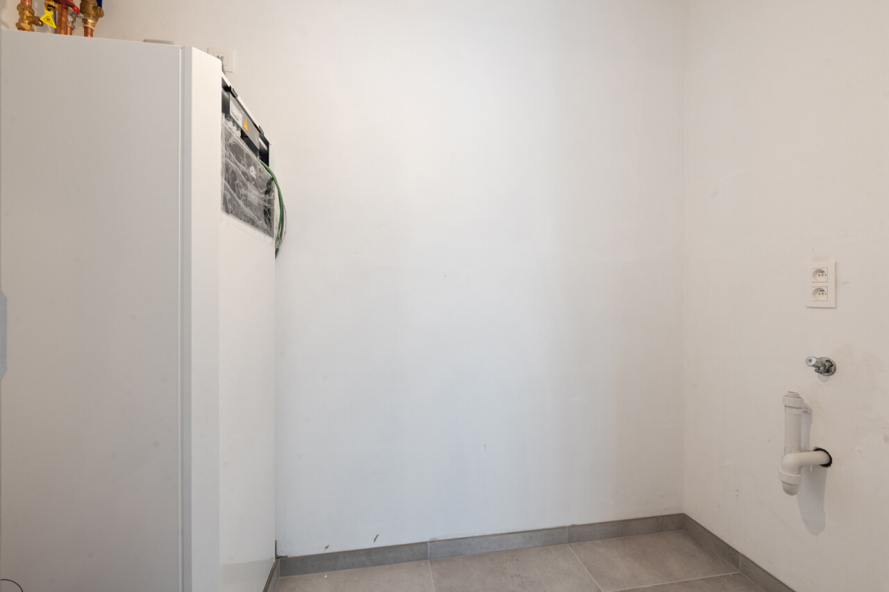 Het appartement verwelkomt u met een inkomhal en een apart gastentoilet. De ruime en lichtrijke leefruimte sluit naadloos aan op de volledig ingerichte open keuken, met aansluitend een praktische grote berging. Verder beschikt het appartement over een moderne badkamer met inloopdouche en een ruime slaapkamer, met voldoende plaats voor een dressing of bureauruimte.
