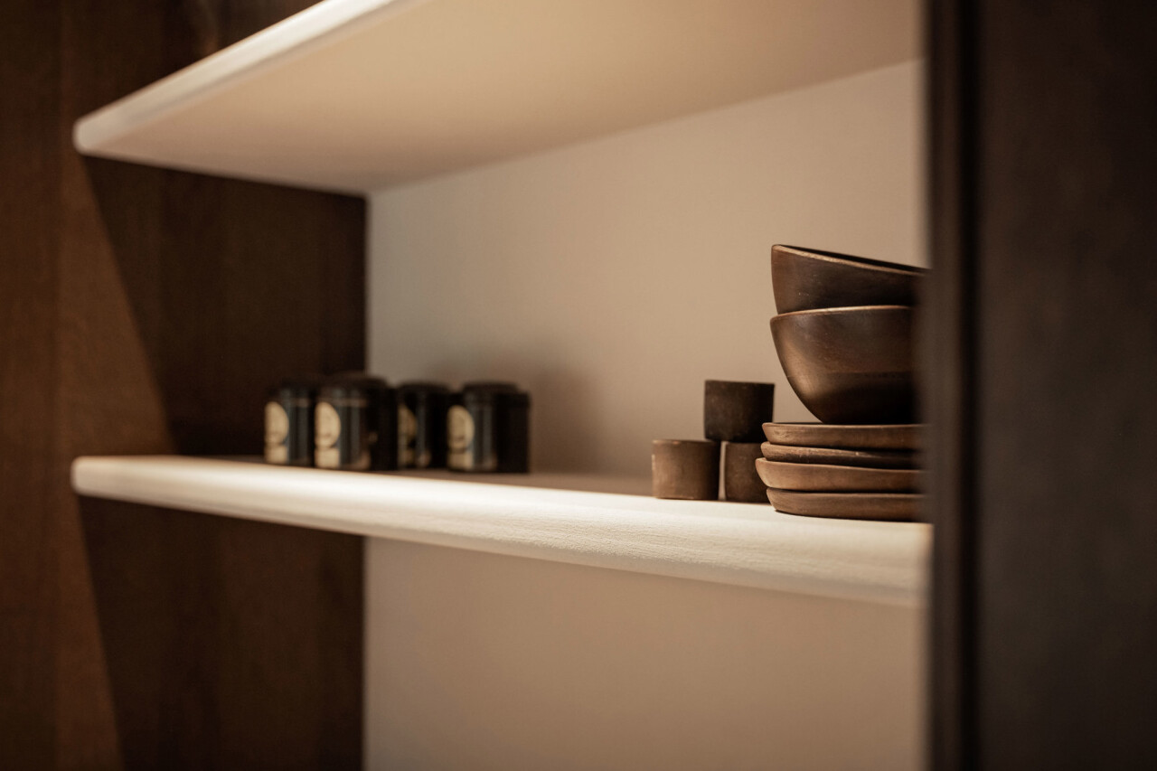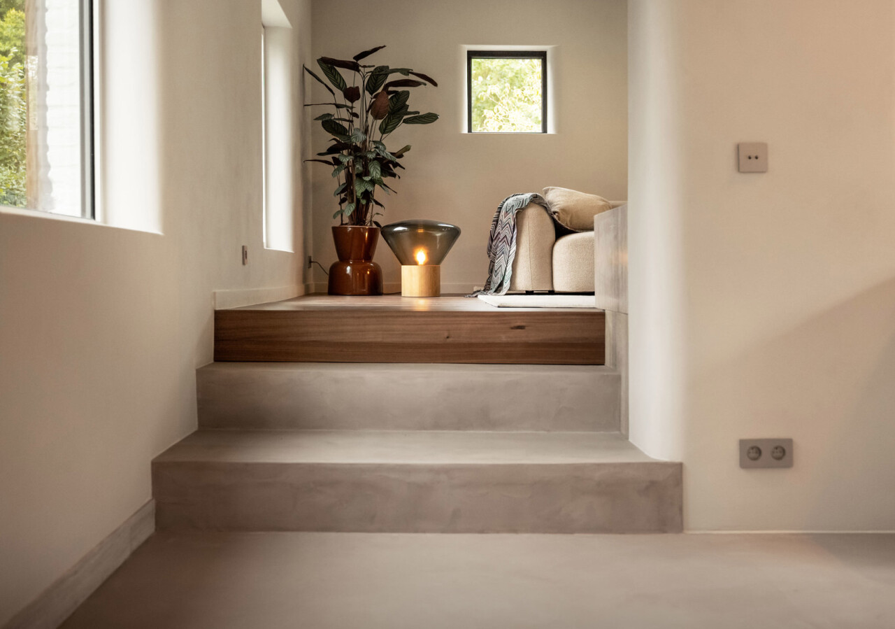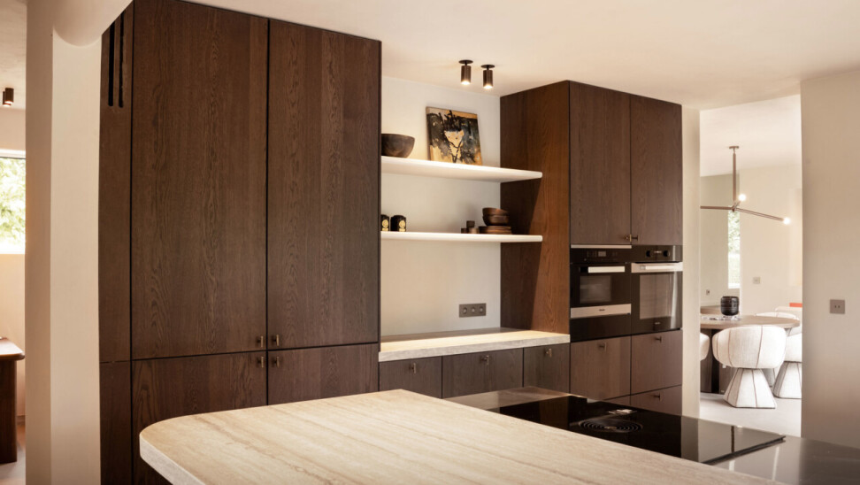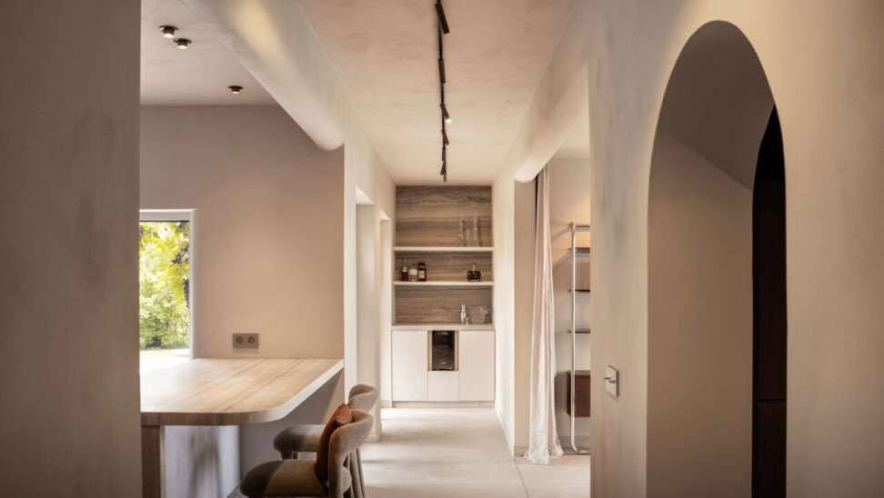 Het interieur straalt verfijning uit dankzij een minutieuze afwerking met afgeronde hoeken, schilderwerk in structuurverf, marmeren plinten, parketvloeren, Xinnix-deuren, stalen binnendeuren, een kwaliteitskeuken met koelcel en Miele-toestellen, en afwerkingen in travertin natuursteen.
