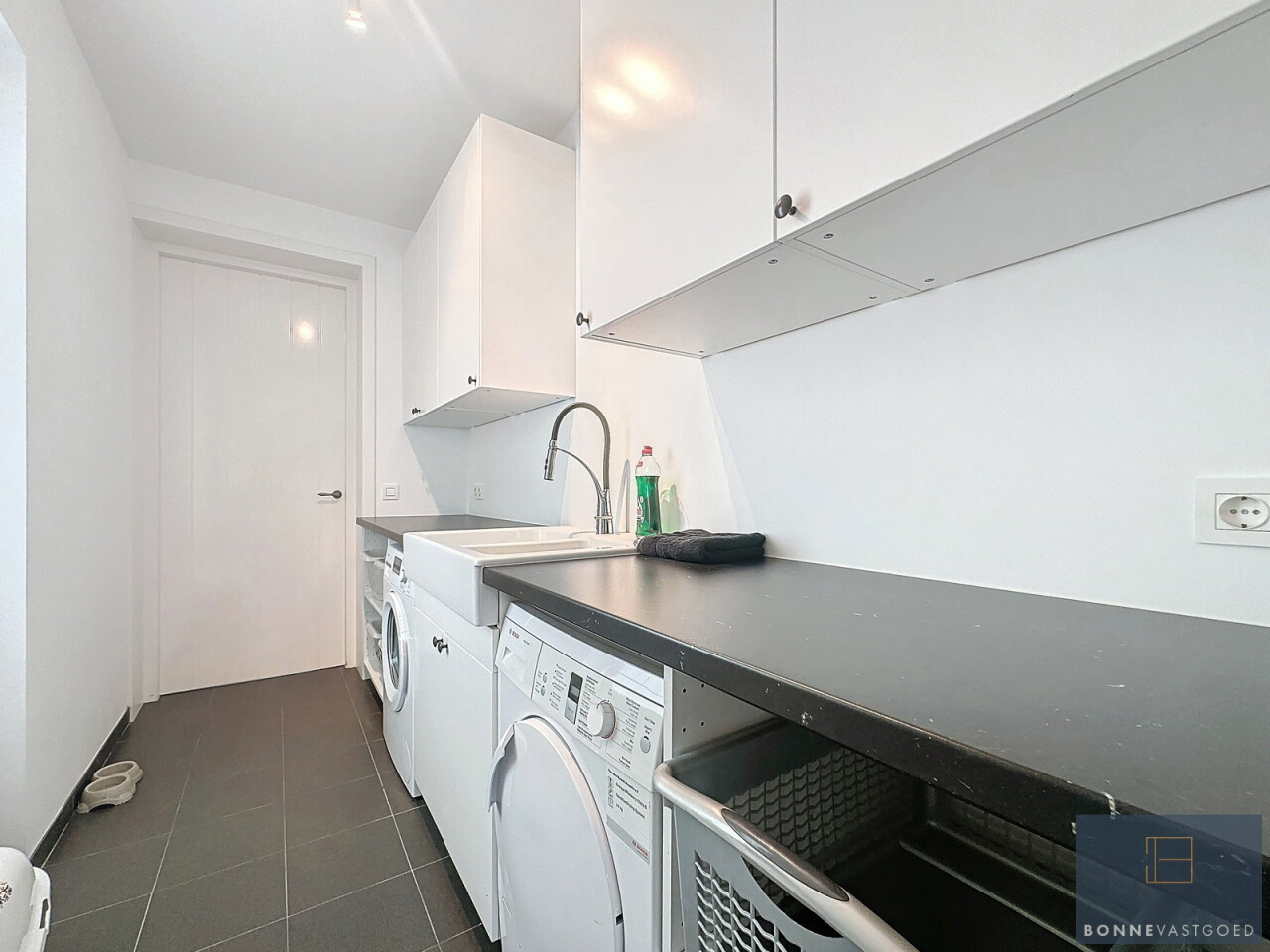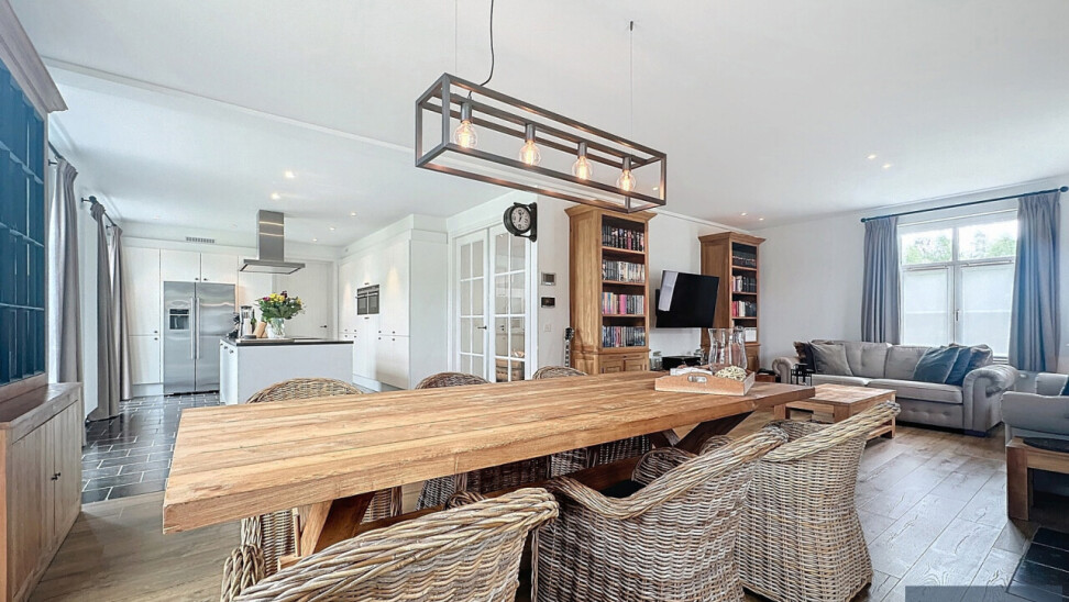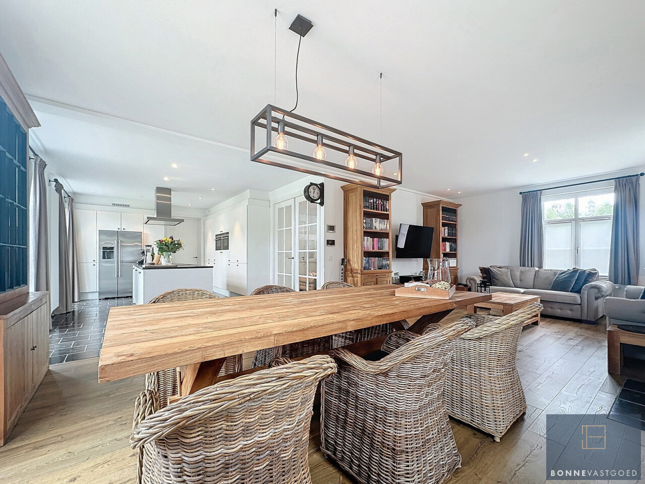 - Lichte, open leefruimte met zithoek (parketvloeren), eetplaats en volledig ingerichte keuken met inbouwtoestellen