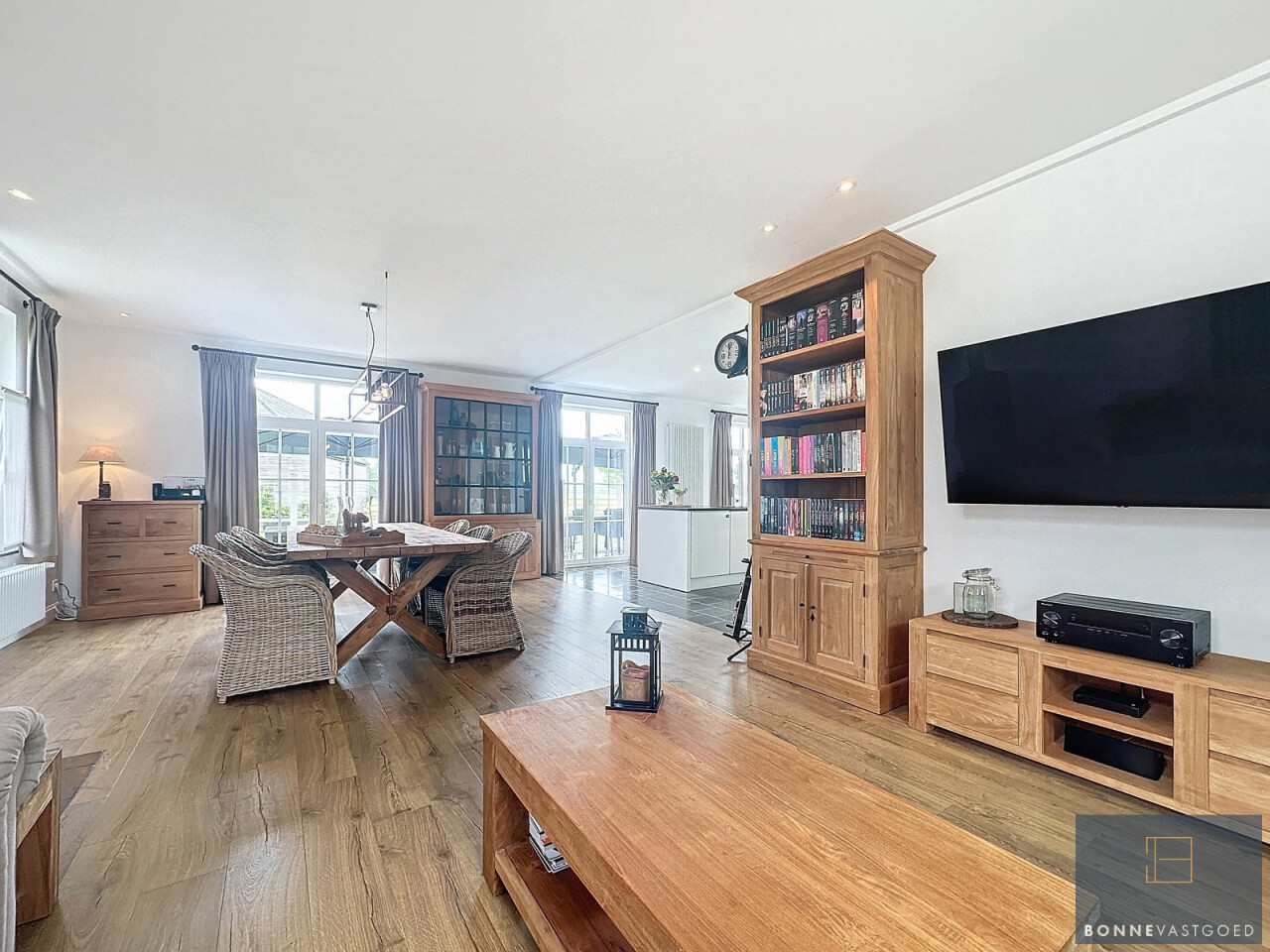 Dankzij de grote raampartijen aan de achterzijde geniet u overal van een prachtig, vrij uitzicht op de tuin en het omliggende groen.