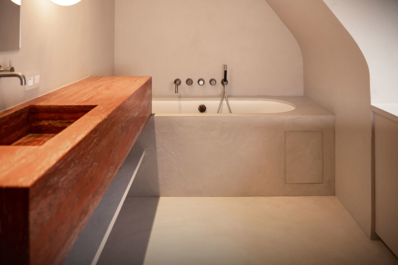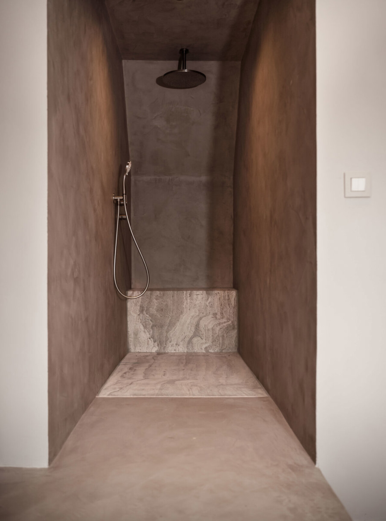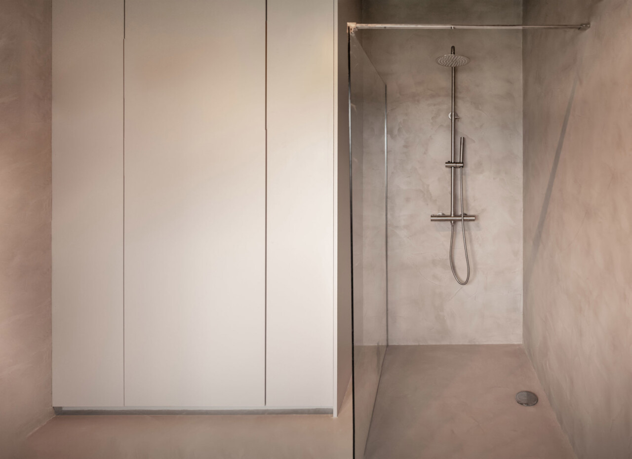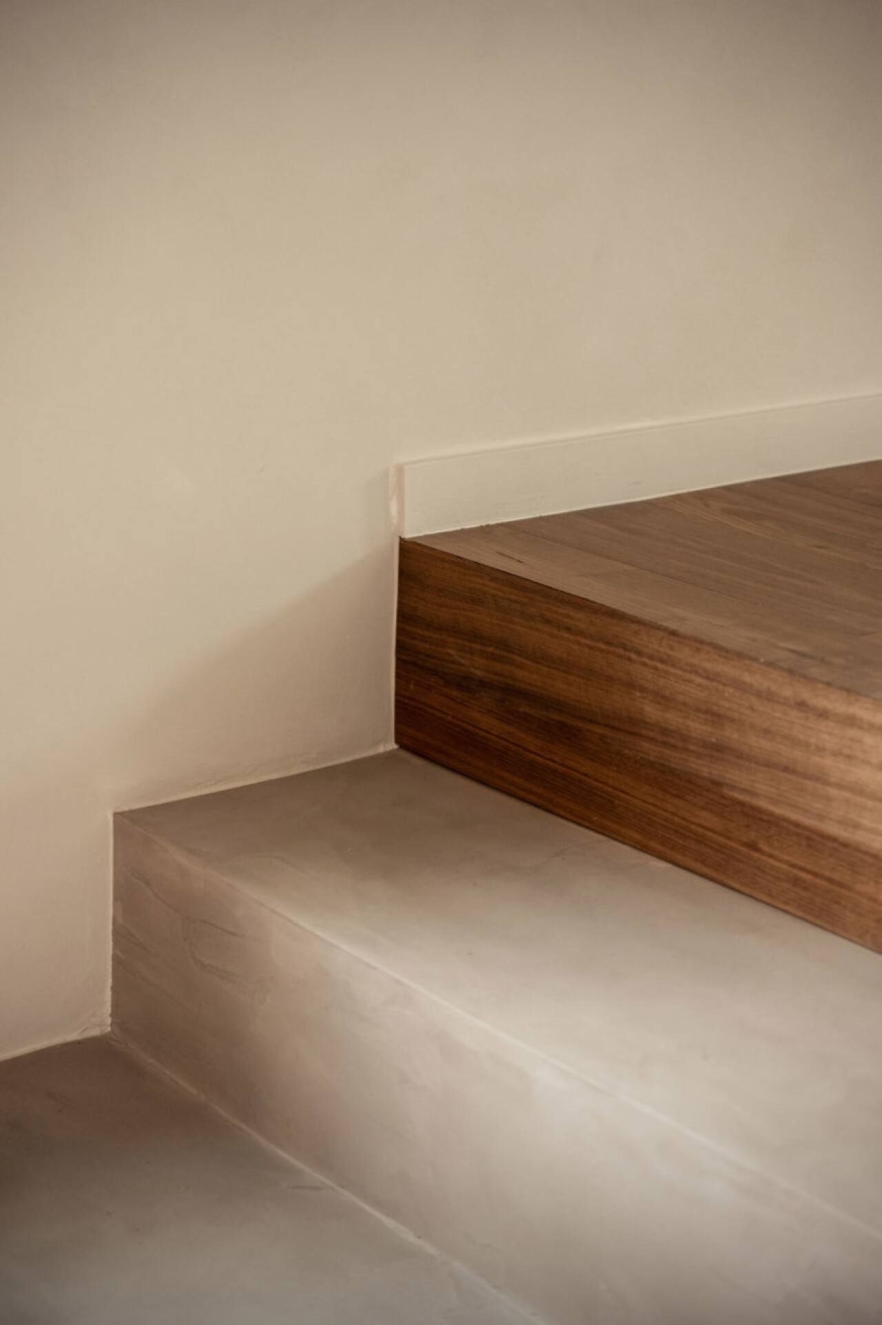 Het interieur straalt verfijning uit dankzij een minutieuze afwerking met afgeronde hoeken, schilderwerk in structuurverf, marmeren plinten, parketvloeren, Xinnix-deuren, stalen binnendeuren, een kwaliteitskeuken met koelcel en Miele-toestellen, en afwerkingen in travertin natuursteen.